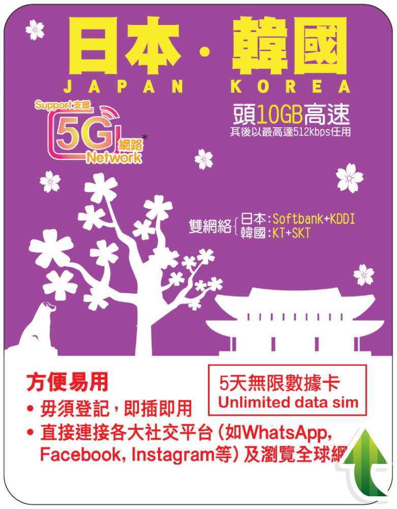 提供 共5天無限數據,首 10GB 為高速上網,其後可繼續以最高 512kbps 速度上網。