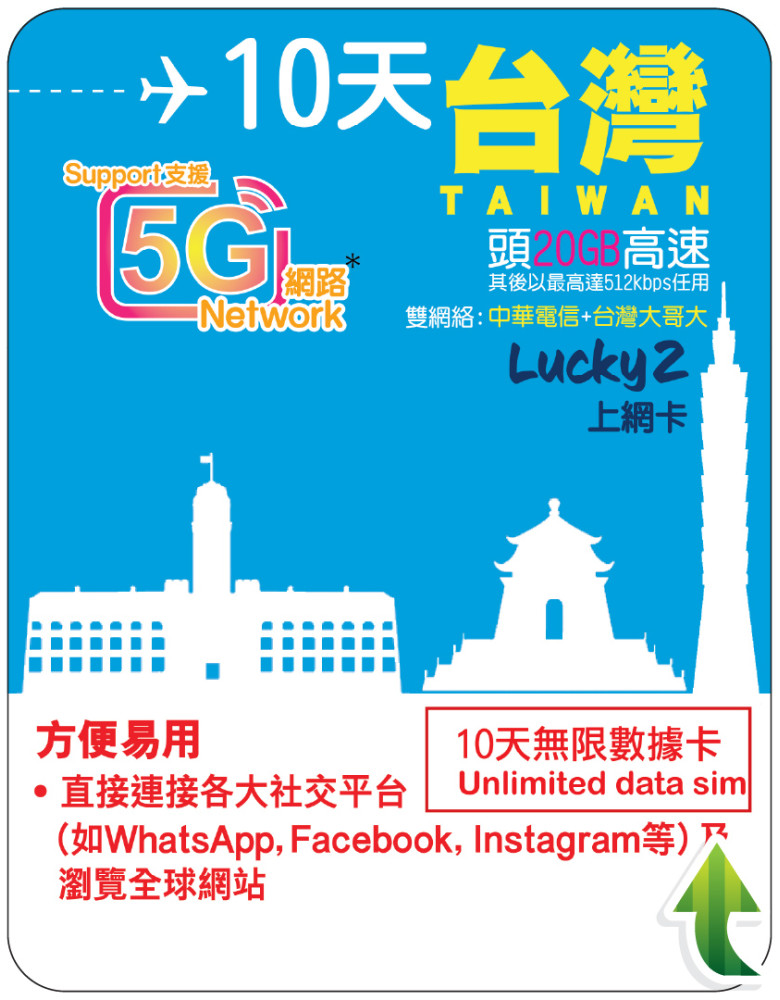提供 共10天無限數據,首 20GB 為高速上網,其後可繼續以最高 512kbps 速度上網。